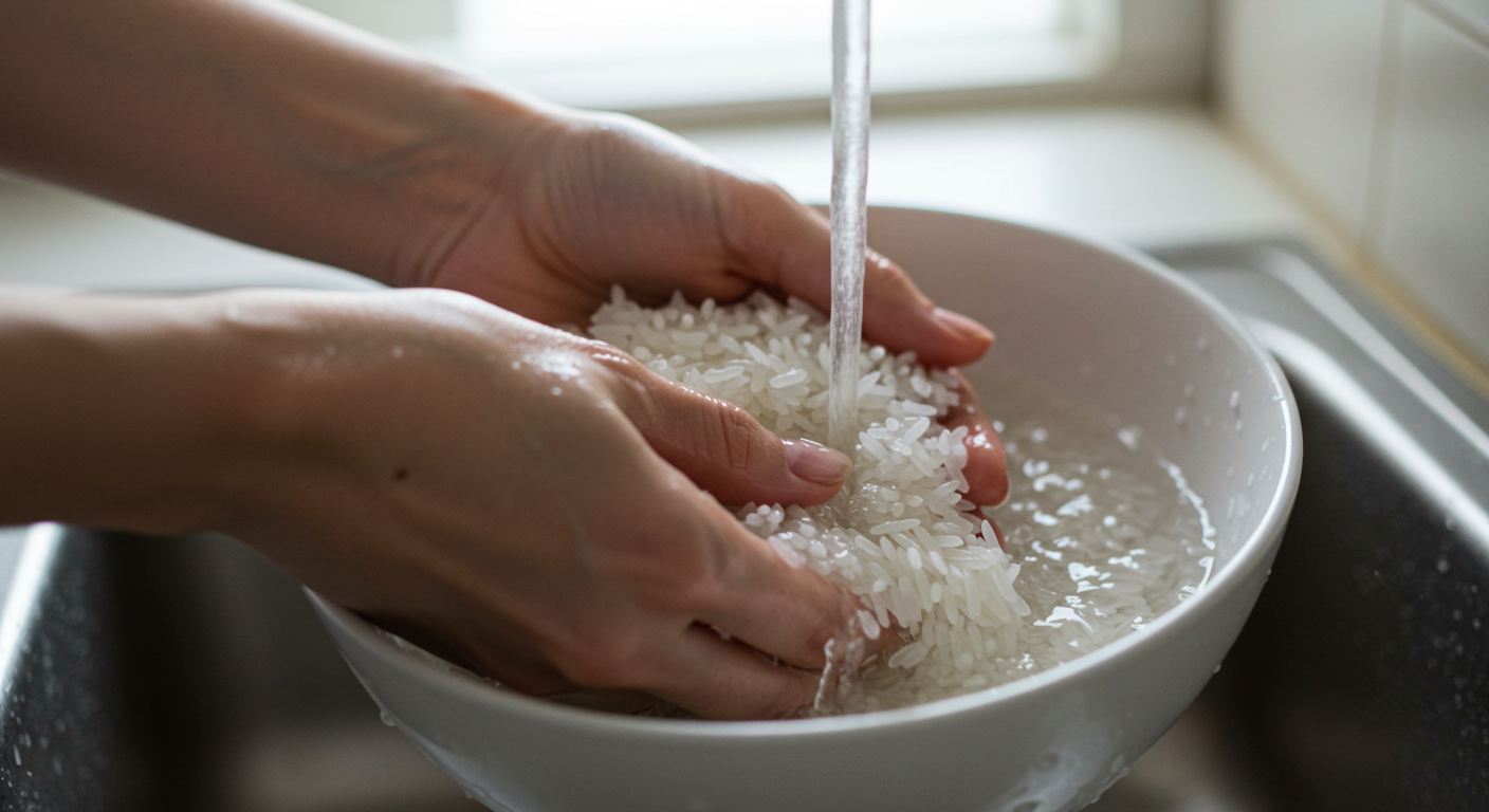 - 황금률: 쌀에 붓는 '첫 물'만큼은 반드시 정수기 물이나 생수를 사용해, 가볍게 휘저은 뒤 빠르게 버려주세요. 그 이후 헹구는 과정은 수돗물을 사용해도 괜찮습니다. 이 작은 차이가 밥의 잡내를 잡고, 쌀 본연의 풍미를 살리는 첫걸음입니다.